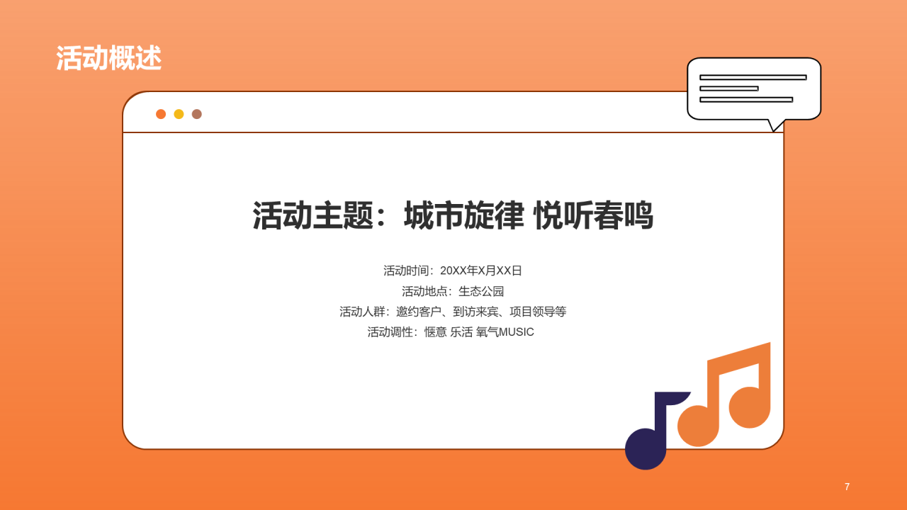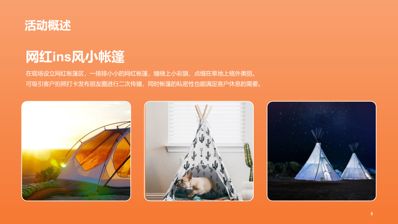 橙色现代帐篷音乐节活动规划PPT