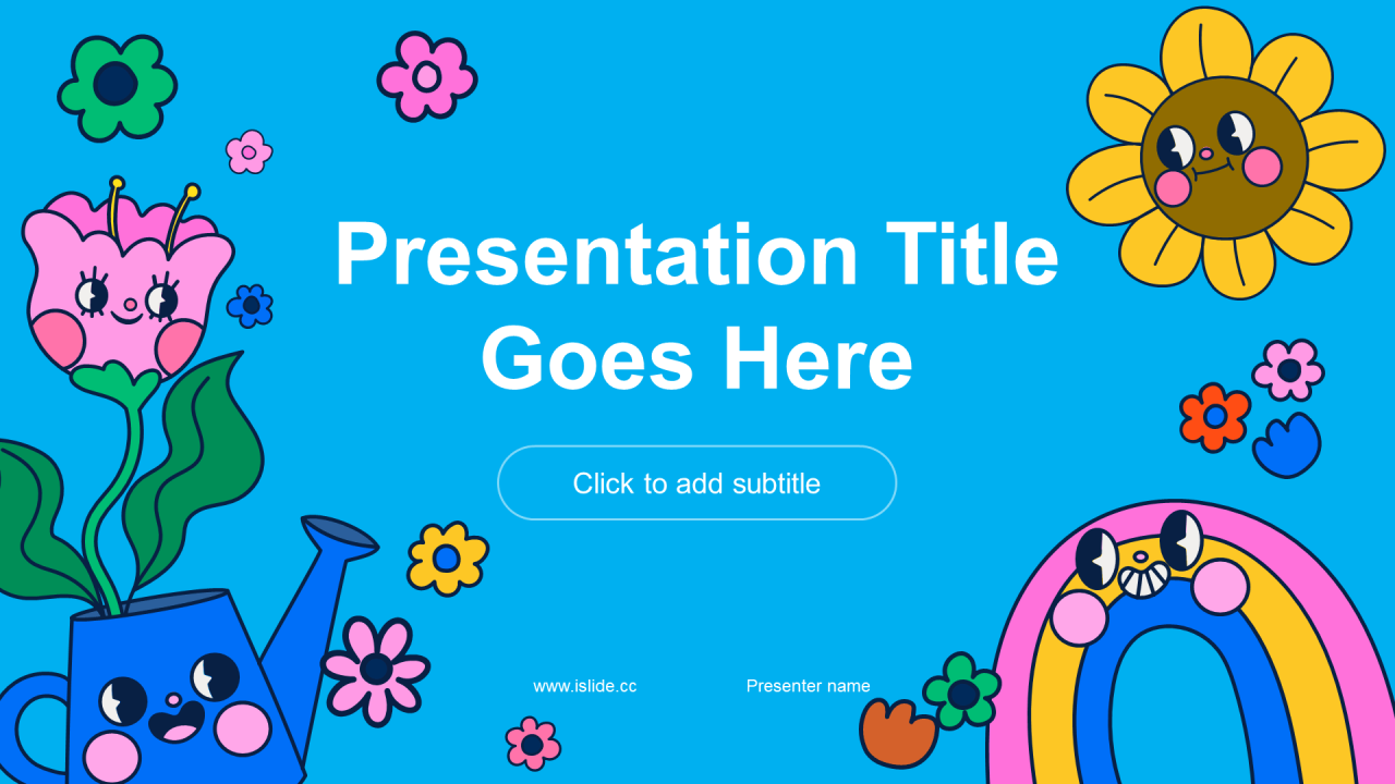 蓝色卡通插画故事绘本启迪童心PPT主题