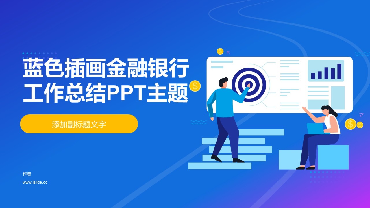 蓝色插画金融银行工作总结PPT主题