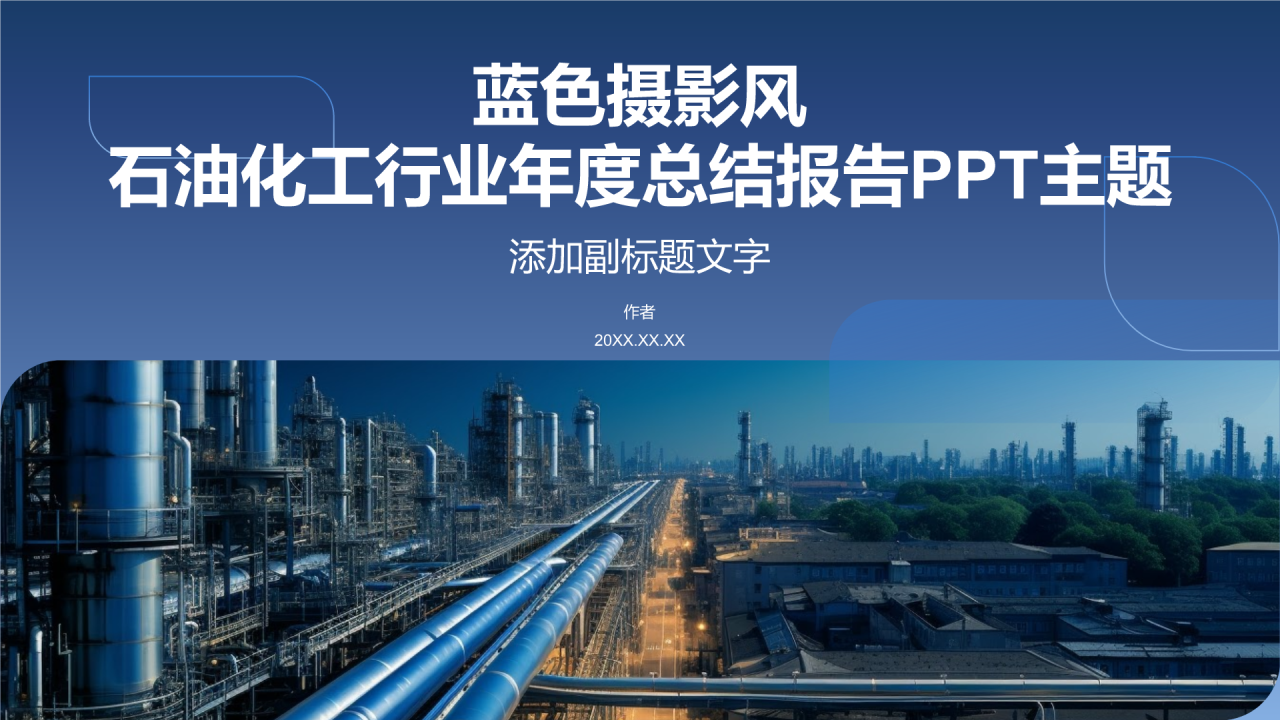 蓝色摄影风石油化工行业年度总结报告PPT主题