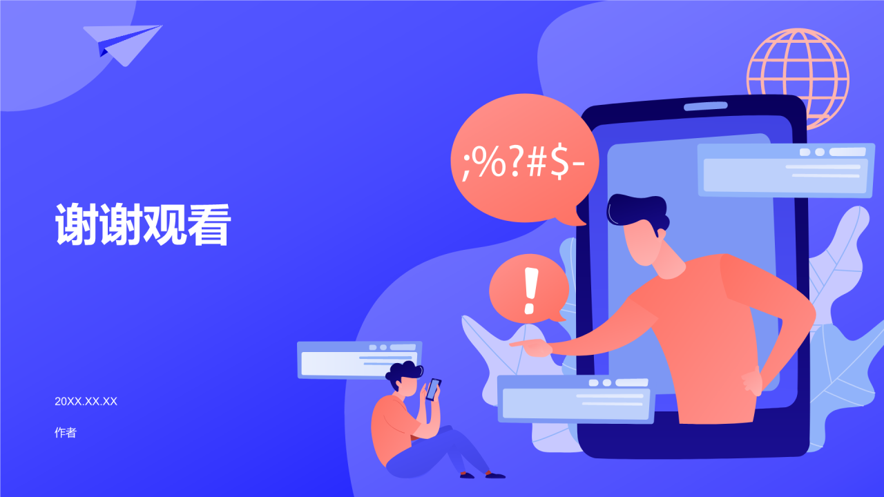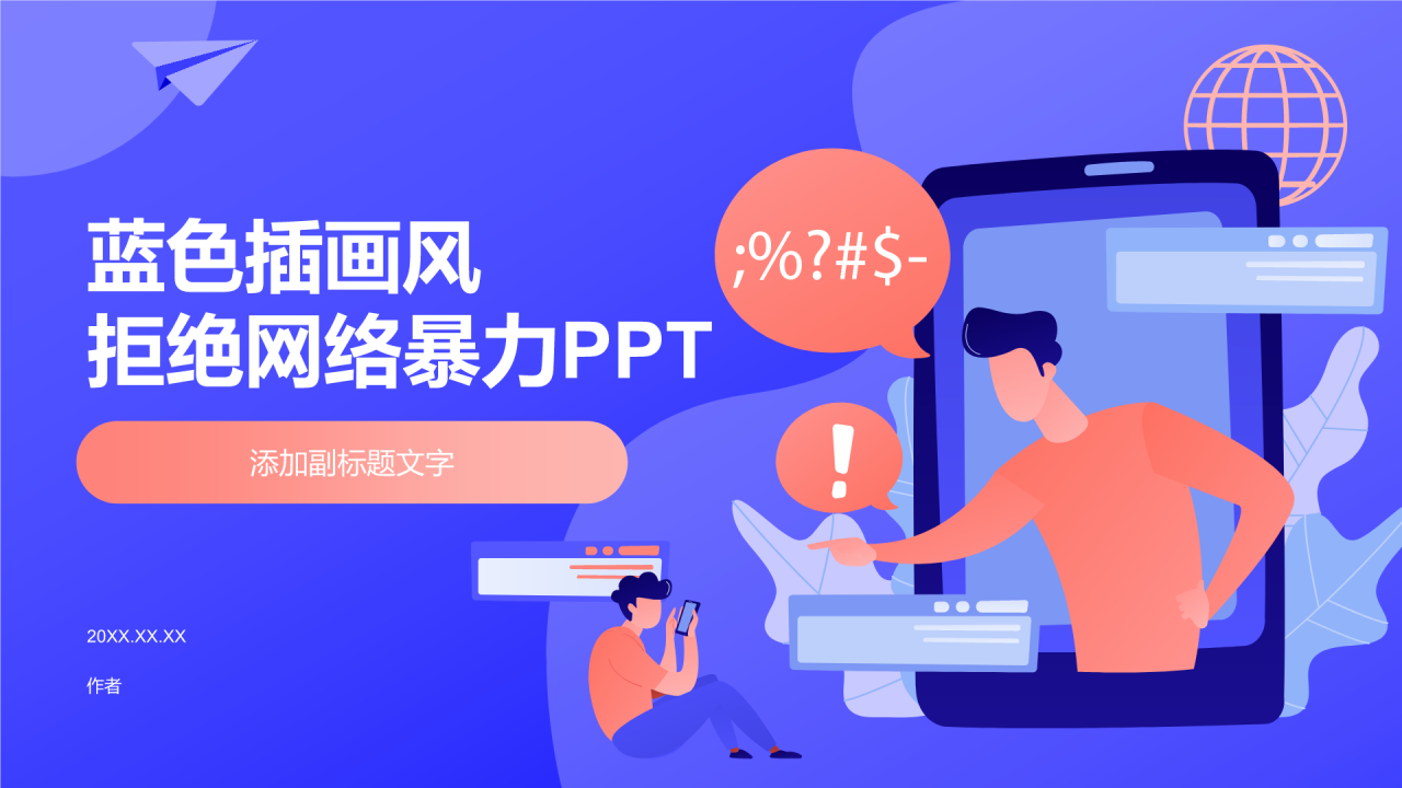 蓝色插画风拒绝网络暴力PPT