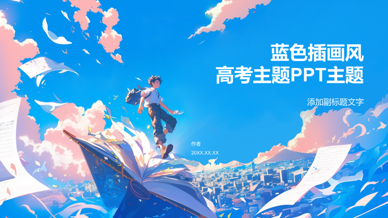蓝色插画风高考主题PPT主题
