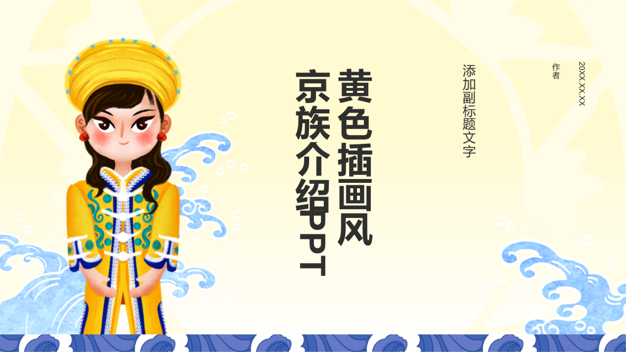 黄色插画风京族介绍PPT
