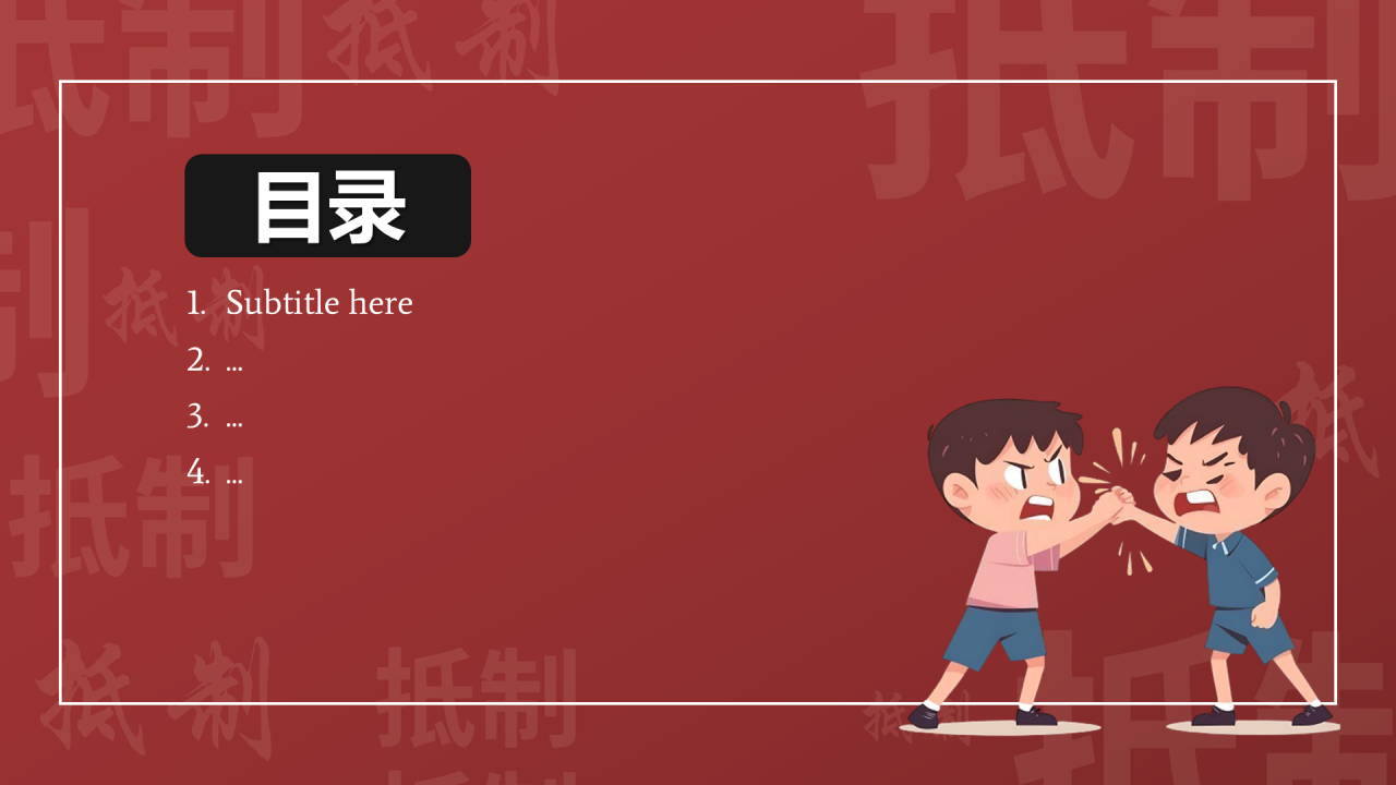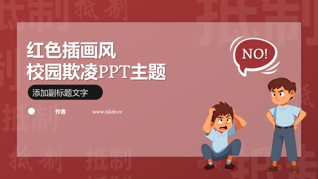 红色插画风校园欺凌PPT主题