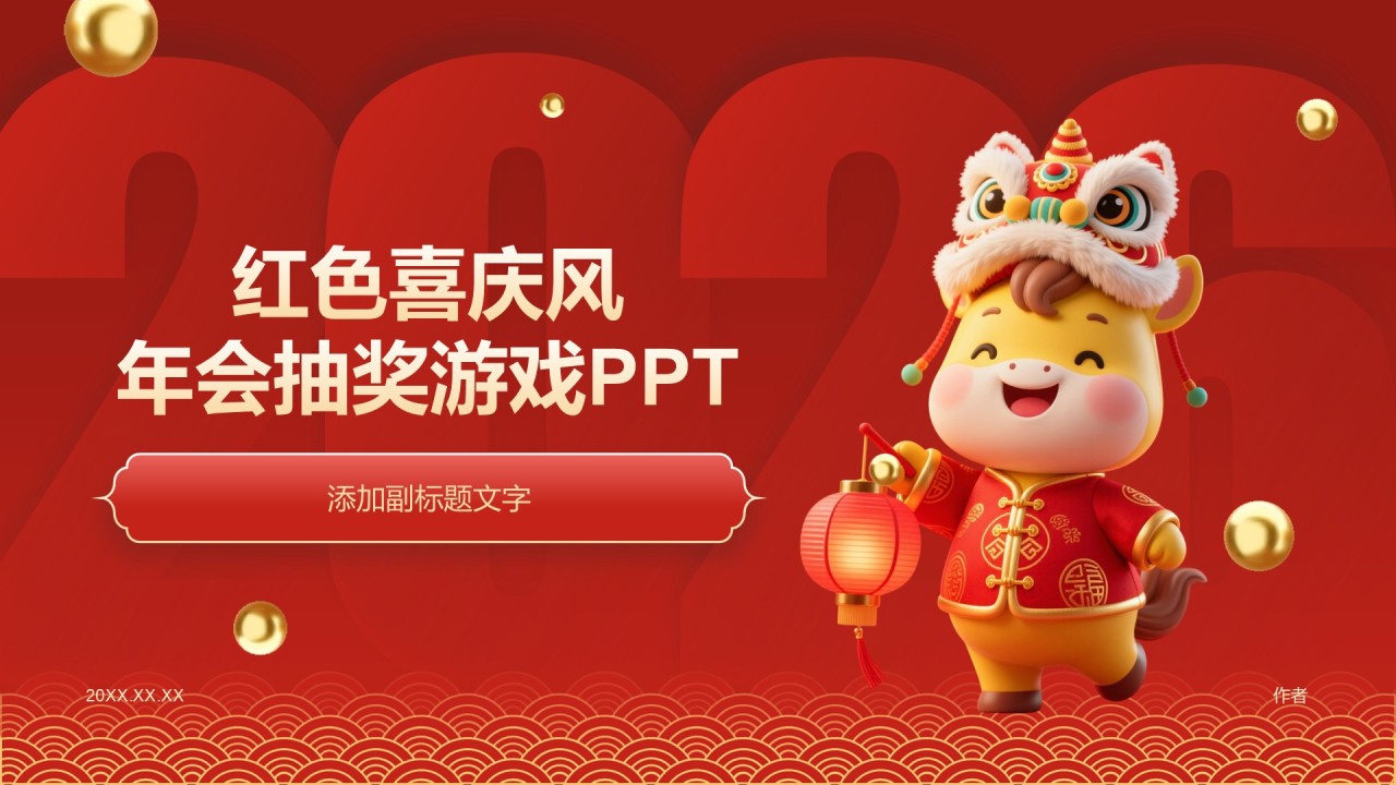 红色喜庆风年会抽奖游戏PPT