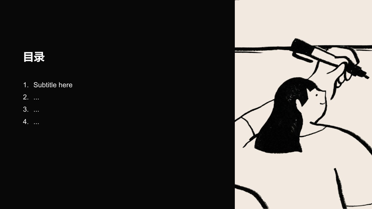 黑白手绘插画风PPT主题