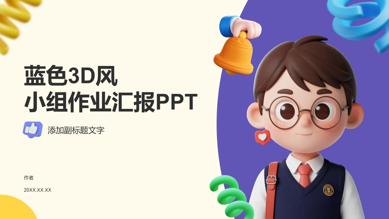本课件以卡通3D风格呈现,专为教育培训行业小组作业汇报设计,旨在激发学习兴趣,提升教学效果。