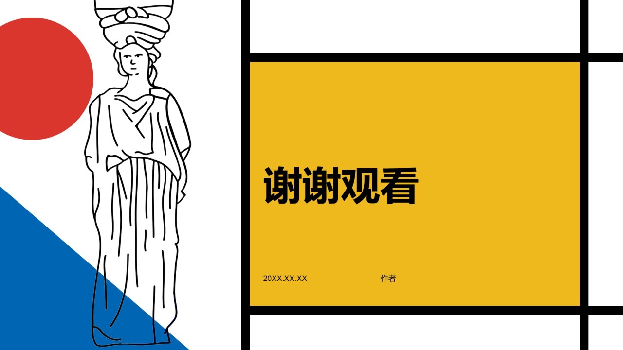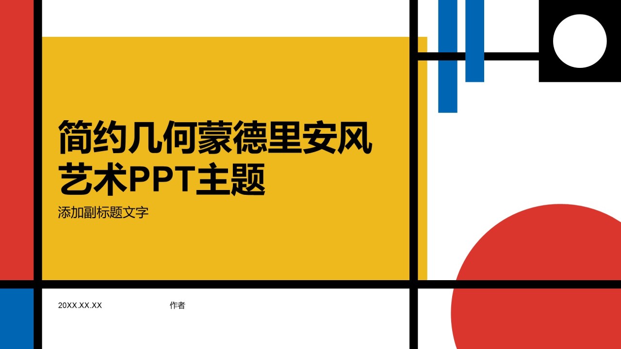艺术广告行业,活动策划主题,简约几何蒙德里安风艺术PPT,打造现代视觉风格,适用于各类商业及文化活动。