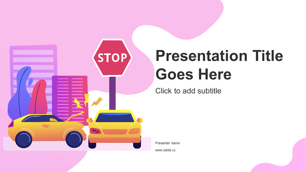 紫色插画交通安全教育培训课件PPT